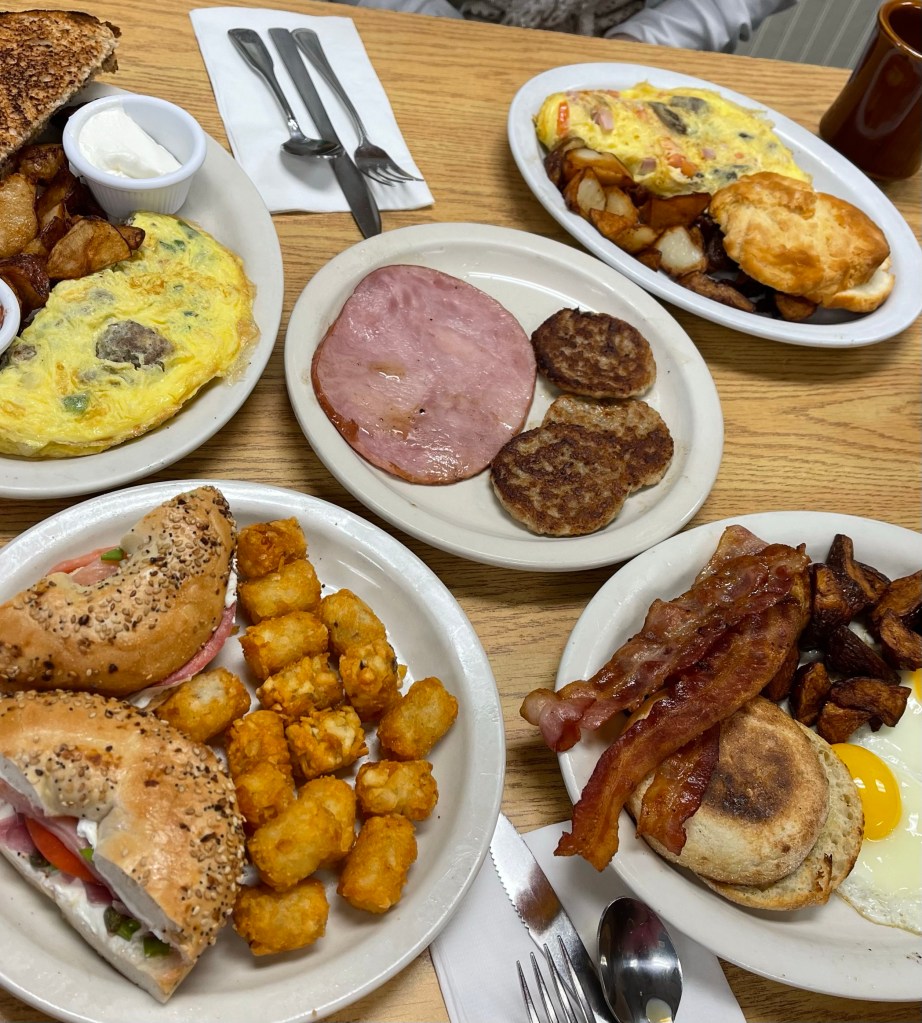 在路上,想找一个地方吃饭,就近拐进了一个美丽的纽约州小镇,普莱西德湖(Lake Placid)。傍晚进入小镇,找到在网上挺火的一个餐馆,烟熏信号(Smoke Signal),看名字就是美国式烧烤,尽管餐馆很火,没有预定,在街上逛了不到20分钟就等到座位。烤牛肉软嫩多汁,量大,满足了大快朵颐的需求。