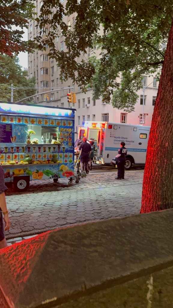 人行道上经常躺着流浪汉,他们蜷曲着,把自己盖的严严实实。我从来没有想过他们是不是还活着,直到有一天傍晚看到中央公园边上4辆救护车,救护人员急匆匆往公园跑,跟随去看,远远的看到车上拉着一具尸体。来了四辆救护车,一大拨救护人员,来时一路小跑,去时悠哉悠哉。