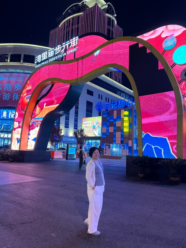 湾里庙步行街很有国际范儿,夜晚的灯光五彩缤纷,特色小吃店干净卫生。不过出了步行街小商贩的摊位又变成了县城级的。