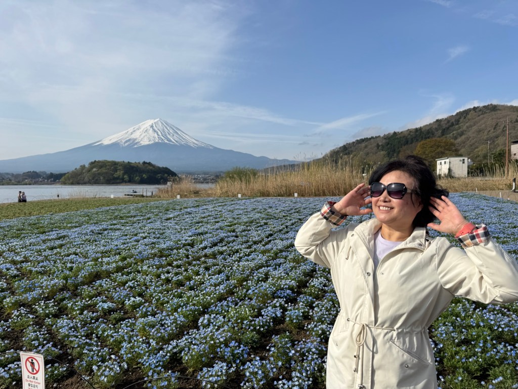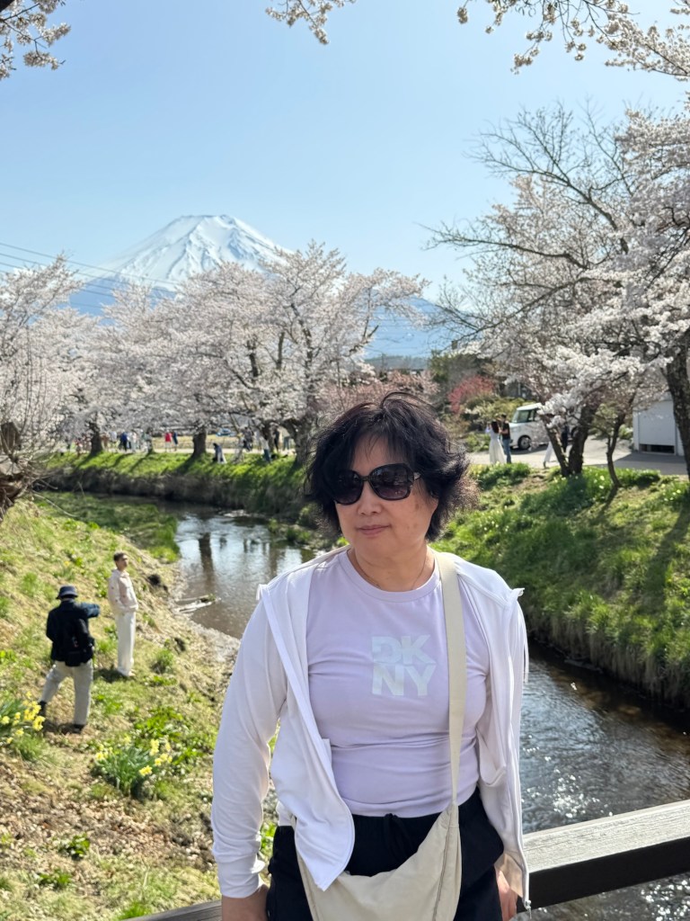 两个早晨都碰到一对从英国来旅游的表姐弟,他们是大学生,东莞富二代。有礼貌会聊天。小伙子才20岁,长得高高大大,照相很棒。邀请我们一起拼车,去这个我永远记不住名字的“新仓山浅间公园”Arakurayama Sengen Park 是《国家地理杂志》推荐的地球最美景点之一,塔,樱花以及富士山同框。小朋友们头天19号来过,只因能见度不好,再来打卡。来回出租都是他们打的,我们来请他们吃饭。小朋友还专门发微信感谢我们。感恩遇见!