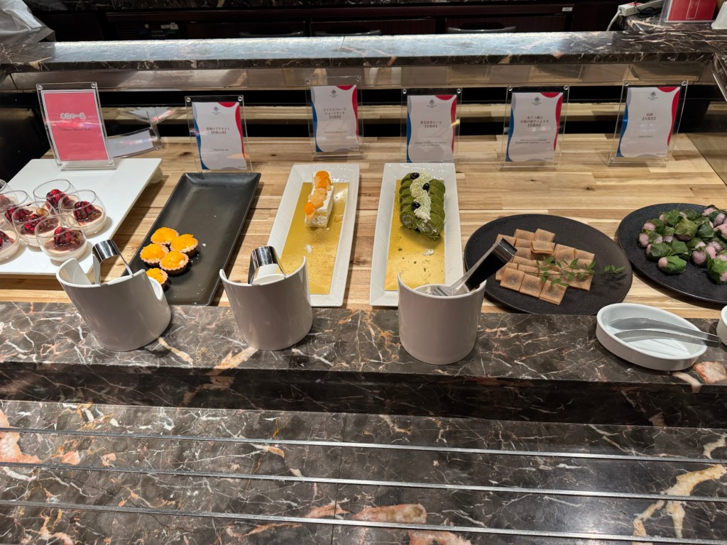 有一道甜点,两个小姑娘现场制作,她们不会说英语,我也是站在边上看她们操做。好像是藕粉类的东西,加热糊化后,加蜂蜜,果酱。花里胡哨的!